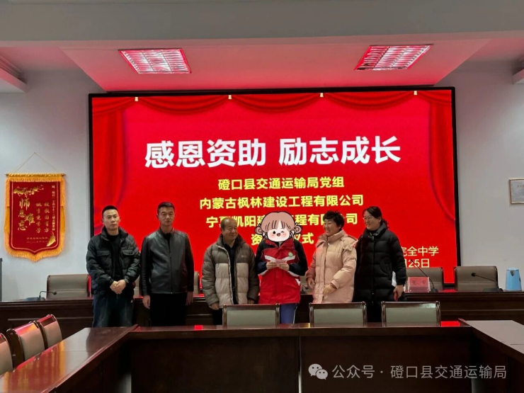 11月25日,磴口一中校園內(nèi)暖意融融,一場傳遞愛心、點亮希望的捐資助學活動順利開展。磴口縣交通運輸局黨組班子成員攜手寧夏凱陽建設工程有限公司、內(nèi)蒙古楓林建設工程有限公司等愛心企業(yè)代表,走進校園開展“情系學子,助力圓夢”主題活動,用實際行動為貧困學子送去關懷與支持。