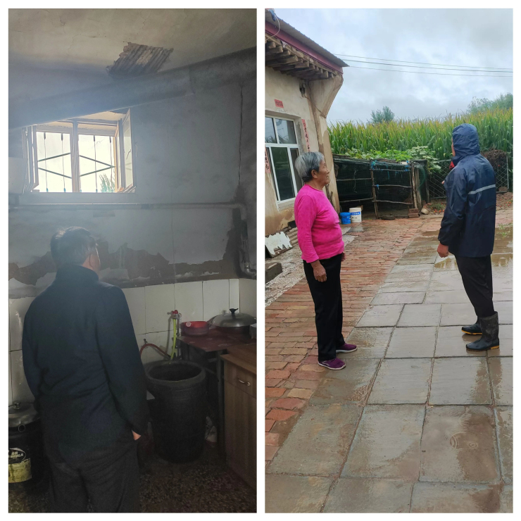 9月6日,補隆淖鎮聞“汛”而動,以“迅”應汛,迅速組織鎮村干部扎實開展降雨安全隱患排查防范工作,對轄區易受降雨影響的危房逐一加強排查,從嚴落實落細各項安全防范措施,進一步做好降雨防范應對工作。在排查過程中,補隆淖鎮黃土檔村“兩委”發現有兩戶村民家中房頂外墻體部分有不同程度的脫落現象,存在安全隱患。并將邱大娘一家和袁大娘一家轉移到安全地帶妥善安置。