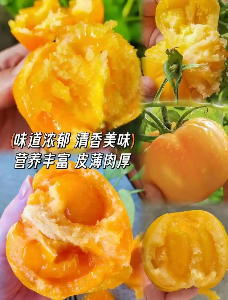 果農(nóng)隨手從藤上摘下一顆黃柿子皮薄肉厚