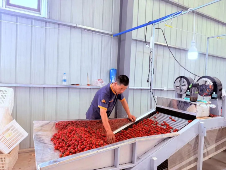 “我們種植的番茄果苗區別于大田番茄和市面上的其他品種“小番茄”,可結12層果實,每七天就能迎來一茬豐收,”大棚負責人王欣榮笑容滿面地說,“從七月到十一月,畝產預計可達7000至9000斤。我們還承包了壩楞村的2個倉儲車間,進行嚴格的篩選與包裝,確保每一顆送達‘北上杭’等大都市的果實都飽滿多汁,品質上乘,按照當下市場價格計算,畝均毛利潤在48000元左右,純利可達26000元,收益相當可觀。”