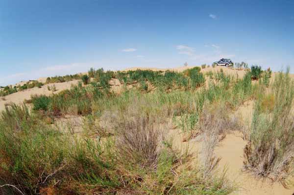 “大漠孤煙直,長(zhǎng)河落日?qǐng)A”,烏蘭布和沙漠是我國(guó)八大沙漠之一,烏蘭布和蒙語(yǔ)為"紅色公牛",總面積近1萬(wàn)平方公里,東北部伸入巴彥淖爾市境內(nèi)3370多平方公里,由巴彥高勒鎮(zhèn)西行數(shù)里便可觀賞到浩瀚的烏蘭布和沙漠,它在磴口縣境內(nèi)面積達(dá)2846平方公里。烏蘭布和沙漠主要生長(zhǎng)有甘草、花棒、麻黃、肉蓯蓉、鎖陽(yáng)、沙棘、梭梭等多種名貴藥材和稀有植物,并有大小湖泊200多處。新中國(guó)成立后,國(guó)家在沙漠里辦起了農(nóng)場(chǎng)、林場(chǎng),開(kāi)渠引水、植樹(shù)種草,已形成一條長(zhǎng)150多公里、寬30~50米的防風(fēng)固沙林帶和封沙育草灌木植被帶,面積約10萬(wàn)畝,如一道天然屏障,有效地阻擋了風(fēng)沙的東侵。隨著國(guó)家生態(tài)工程的實(shí)施,往日的“黃沙漫天”將被今日的“沙海綠洲”所湮沒(méi)。