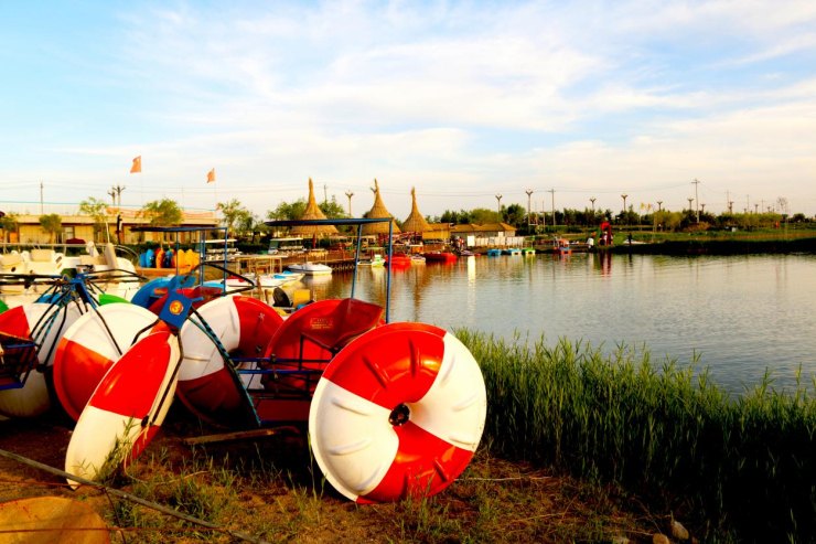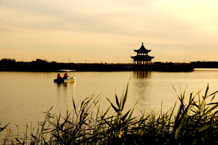 北海濕地公園位于磴口縣城北區,規劃占地面積約2150畝,其中水域面積約1448畝,占總面積的67%,蓄水量達261萬立方米。北海濕地公園是磴口縣依托得天獨厚的水資源,結合濕地保護與恢復工程,為使城區形成“城中有水,城河湖一體”的塞上水城而利用原有小清溝及景觀湖,放大水體,將湖面劃分為東湖、西湖兩個湖區,并依水配套高標準住宅區、商業區、旅游區等多功能生態旅游景觀。景區內林木婀娜、綠草如茵,建有碼頭、拱橋、臨水平臺、涼亭木椅、觀景棧道等,環境優雅,風光亮麗。