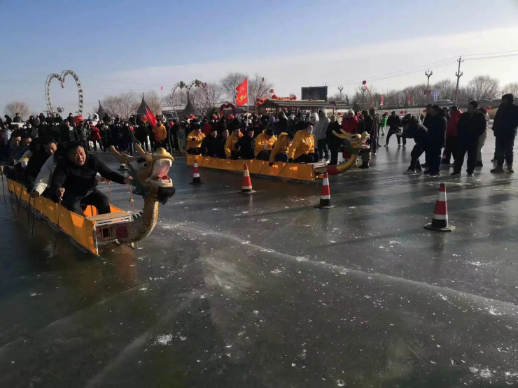 比賽設(shè)有冰上賽龍舟、冰上拔河比賽、冰車接力賽、冰上陀螺等項(xiàng)目。