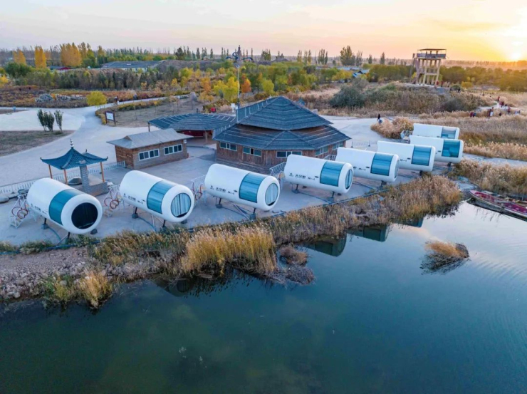 在烏蘭布和沙漠的懷抱中,住太空艙,夜觀宇宙星河、闌珊人間,露營(yíng)野炊,一首音樂、一叢篝火、約三五好友,融入自然,感受生活。