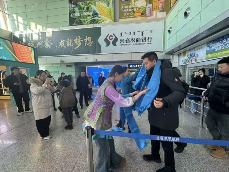 為促進文旅融合,助力“歌游內(nèi)蒙古”品牌建設(shè),1月7日上午,磴口縣烏蘭牧騎走進巴彥淖爾市天吉泰機場開展“歌游內(nèi)蒙古”歡迎回磴口過年主題活動,讓游客在歌聲相伴的旅程中領(lǐng)略內(nèi)蒙古的自然之美、四季之韻、天籟之音。“歌游內(nèi)蒙古”旅游品牌口號是“歌聲相伴 愉悅旅行”。磴口縣烏蘭牧騎的演員們用悠揚的馬頭琴旋律拉開帷幕,用激情的歌聲和熱情的哈達迎接八方來客,讓在外打拼的游子感受到回家的溫暖,歡快的蒙古族舞蹈點燃現(xiàn)場氛圍,一副熱熱鬧鬧回家過年的節(jié)日氣氛。往來旅客在觀看的同時,紛紛拿起手機記錄下出行中的歡快時刻。