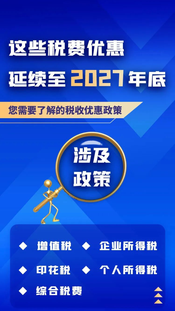 1.自2023年1月1日至2027年12月31日,對增值稅小規模納稅人、小型微利企業和個體工商戶減半征收資源稅(不含水資源稅)、城市維護建設稅、房產稅、城鎮土地使用稅、印花稅(不含證券交易印花稅)、耕地占用稅和教育費附加、地方教育附加。
