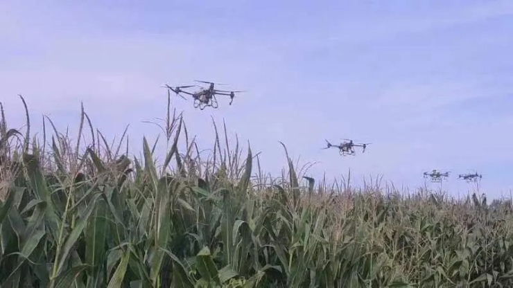 當前秋糧正處于產量形成的關鍵時期,根據自治區、市級關于抓緊抓好秋糧“一噴多促”工作的部署要求,農牧和科技局共遴選出6家專業飛防服務組織在磴口縣扎實開展玉米大豆“一噴多促”飛防作業。截至8月23日,磴口縣共出動植保無人機58架,玉米大豆“一噴多促”飛防作業面積19.4萬畝,涉及十個蘇木鎮、農場公司,圓滿完成我縣玉米大豆“一噴多促”飛防作業任務。