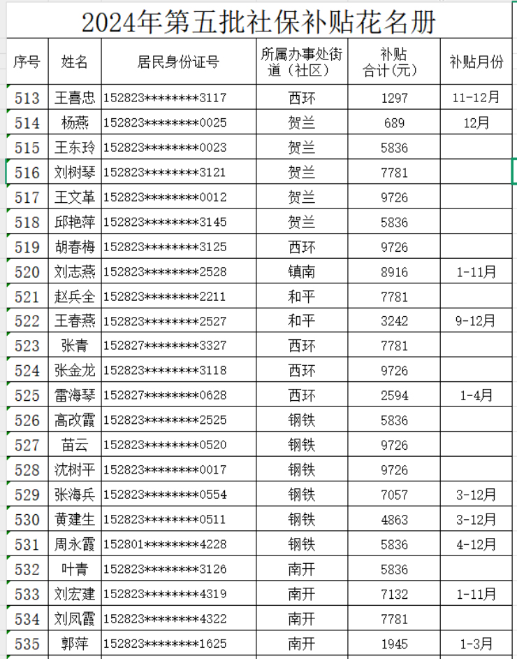 磴口縣就業服務中心2024年靈活就業社保補貼公示名單(第五批)