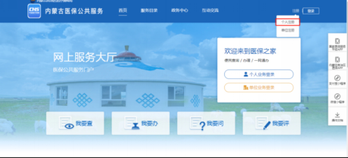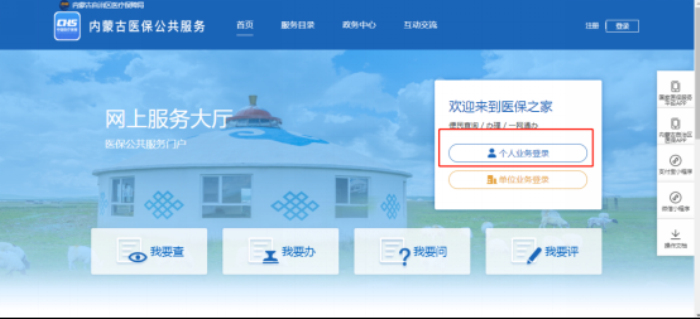 地址:https://ylbzj.nmg.gov.cn/ggfw/hallEnter/#/Index