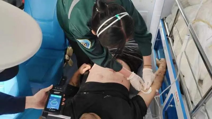 5月4日早8時06分,磴口縣人民醫院接到120急救指揮中心出診指令后,3分鐘內派救護車火速趕往事發現場開展醫療救援。同時,急診科第一時間上報總值班和總帶班,院內立即啟動應急救治預案,開通緊急救治通道,并通知骨科、普外腫瘤科、泌尿肛腸科、呼吸內科醫師第一時間趕到急診科等候患者,同時通知ICU、手麻科、檢驗科、血庫、超聲科、影像中心等做好救治工作準備。