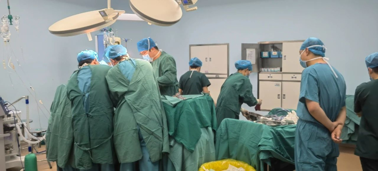 9點26分,男性患者進入急診救治綠色通道,各相關專業專家立即投入到患者的搶救工作中。患者傷勢非常嚴重,已出現失血性休克,血壓、心率等各項生命指征都嚴重低于正常值,生命處于極度危險之中。醫護人員立即對其進行搶救,給患者開通一條中心靜脈通路,兩條外周靜脈通路,留置導尿,心電監護,抽血及血氣分析等。短短的四分鐘后,醫護人員完成了各項急救措施,爭分奪秒搶救患者生命。緊急CT、B超、化驗檢查后轉入ICU,經救治團隊會診,“一分鐘也不能多耽誤,患者隨時都會有生命危險,必須進行手術治療”,醫院迅速與巴彥淖爾市城市醫療集團牽頭單位巴彥淖爾市醫院取得聯系,緊急派肝膽外科專家到院實施剖腹探查手術,此時患者家屬剛到醫院,與家屬溝通后,經綠色通道將患者直接送到手術室,立即開展手術救治。通過醫院自體輸血技術的應用,充足的備血,及時的調血,共輸注血液5800ml、血漿2350ml,保證了手術的順利進行,截至下午5點30分,手術順利,患者轉入重癥醫學科接受后續治療。