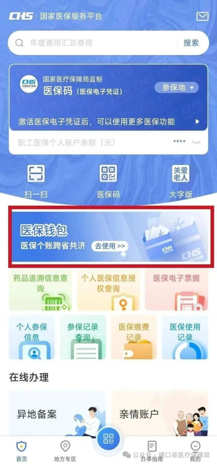 開通醫保錢包:在App首頁進入【醫保錢包】專區,按提示選擇使用地、填寫綁定手機號,確認開通。