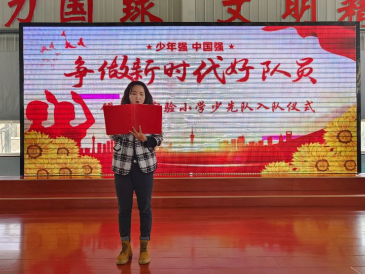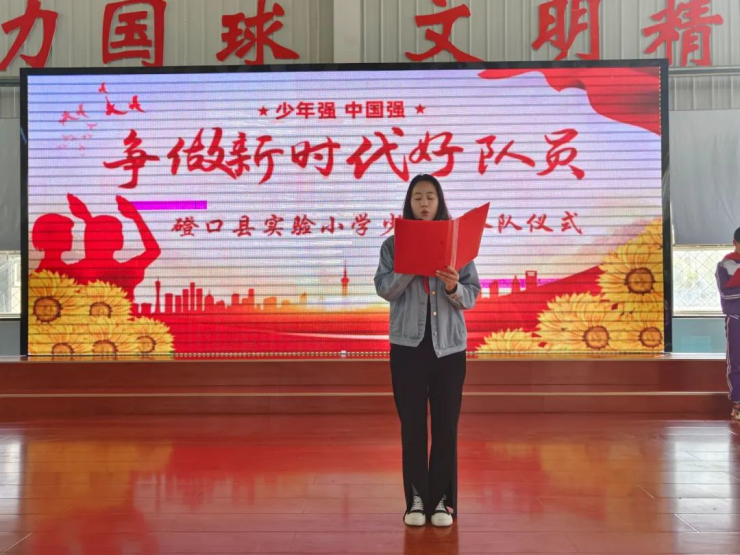 在大隊輔導(dǎo)員的帶領(lǐng)下,新隊員們鄭重地舉起右拳在鮮艷的隊旗下莊嚴宣誓,一句句鏗鏘有力的誓言響徹整個會場。