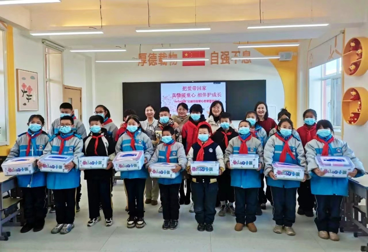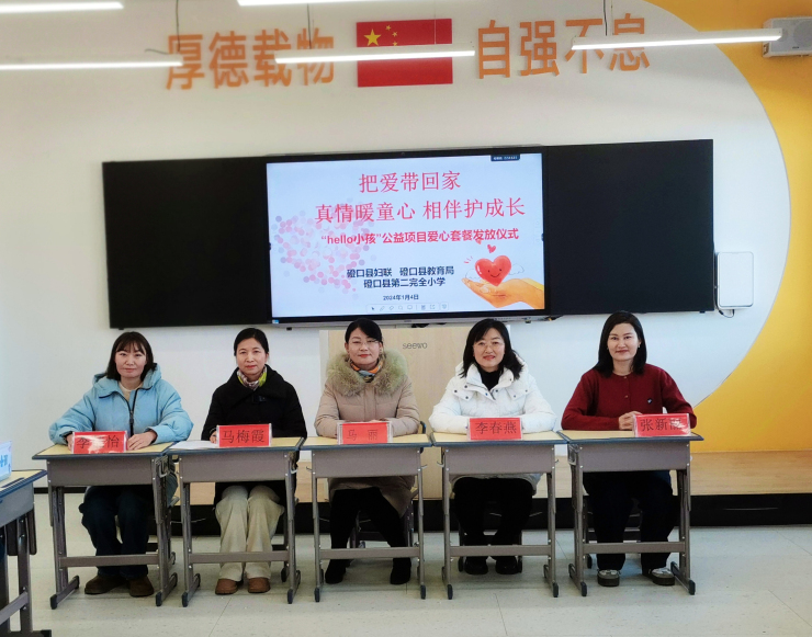 2024年1月4日,磴口縣婦聯舉行把愛帶回家—真情暖童心相伴護成長“HELLO 小孩”愛心套餐發放儀式。縣婦聯副主席李春燕、縣教育局副局長馬麗、二完小校長馬梅霞及相關工作人員參加儀式。