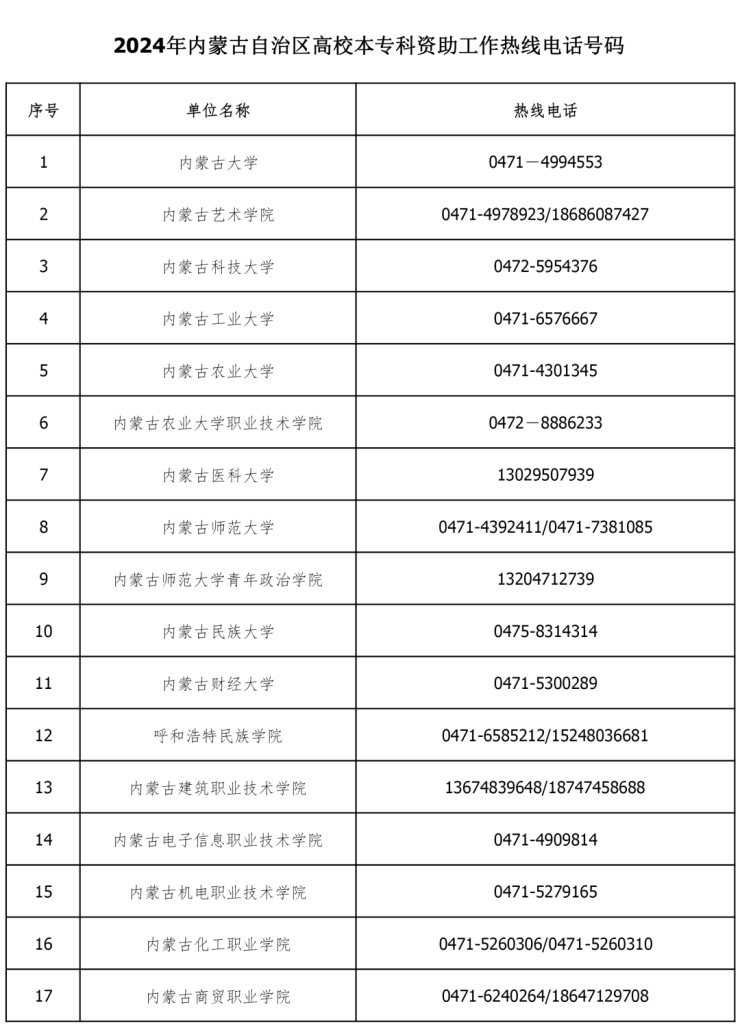 為做好內蒙古高校家庭經濟困難學生資助政策咨詢工作,方便廣大新生和家長全面了解國家及自治區高校現行的各項資助政策,日前,內蒙古自治區開通高校學生資助工作熱線電話。